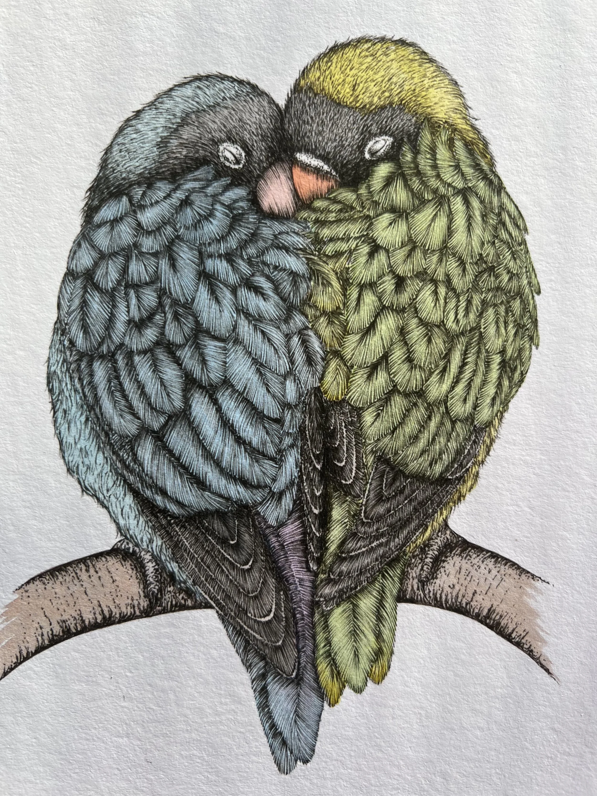 I received some really lovely comments from visitors, especially about my three large Hummingbird and Tanager pieces. I was so happy when the Lovebirds no.1 original found a new home with a very sweet little girl, as well as several Giclée prints and handmade cards. The fair was going well and I still had Sunday to go!