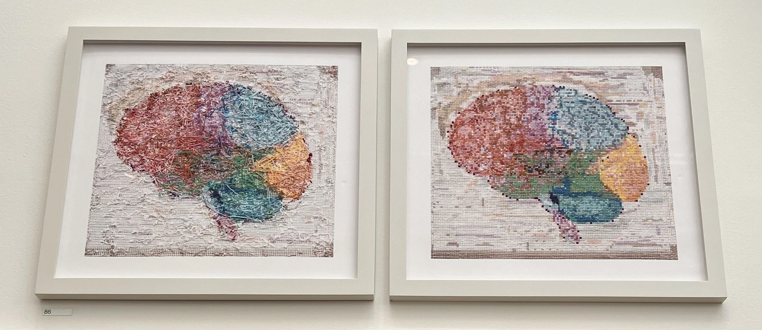 This piece also caught my eye. It was one of many fabric and embroidery pieces and I think they really enhanced the exhibition. The artist exhibited an embroidered brain from the ‘neat’ front and ‘messy’ underside. Going back to my preference for labels, I would have liked to have read a little about each piece of art to better understand and appreciate them; this was definitely one of those!