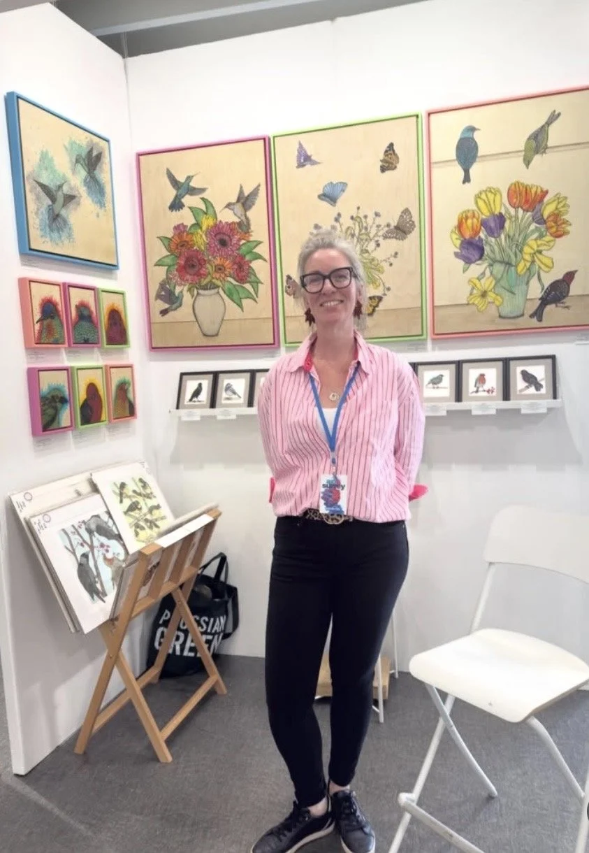 Art:Surrey Art Fair came at the perfect time in some ways as I was starting to emerge from my semi hibernation state and felt ready to ‘get going’. On the flip side the Friday with the set up and private view was also my birthday so not such good timing there!