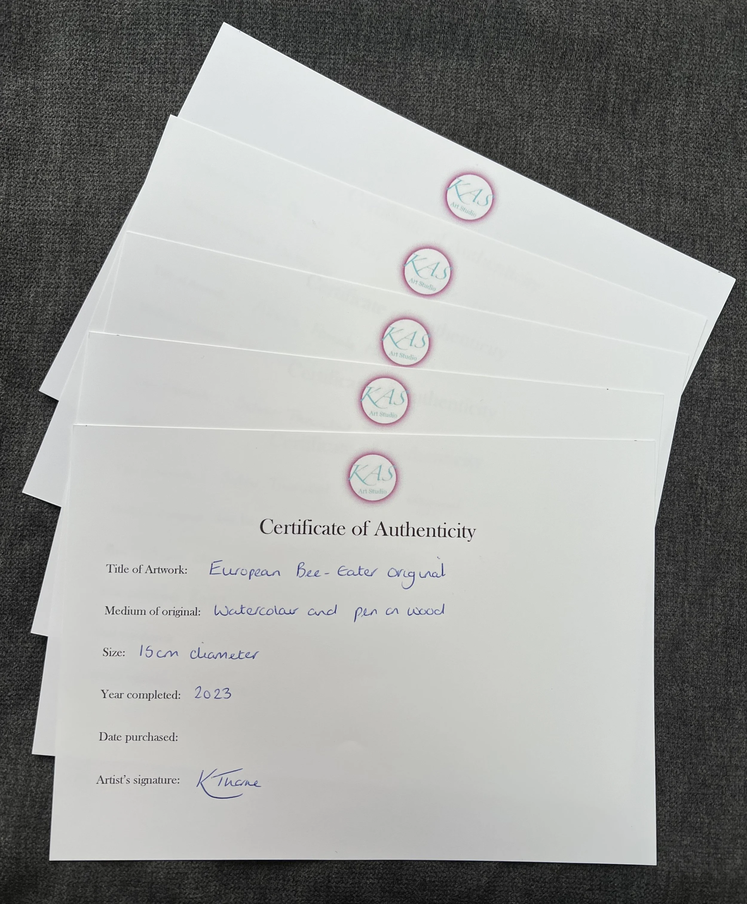 One of my jobs this month was to finally sort out my Certificates of Authentication (COA)! This has been something that has been on my list for a while, something I knew I needed to review but I wasn’t sure what I wanted. When I first started selling my work I had small A5 certificates printed. These were very simple and inexpensive as not only was I learning but I was just starting out and needed to keep my costs down.